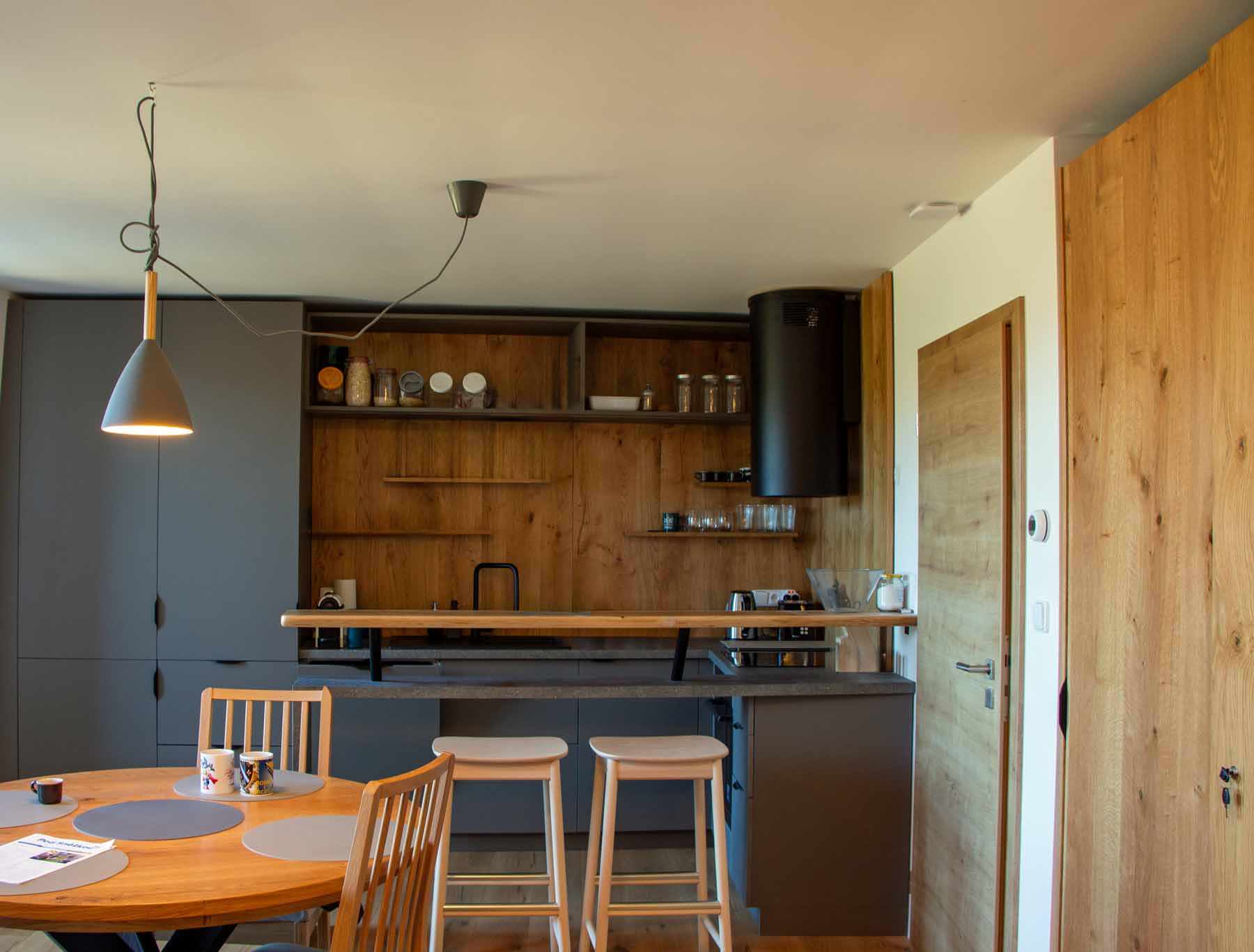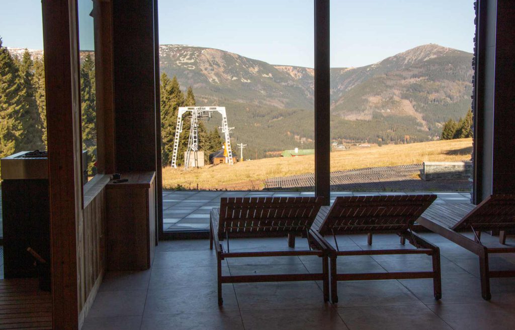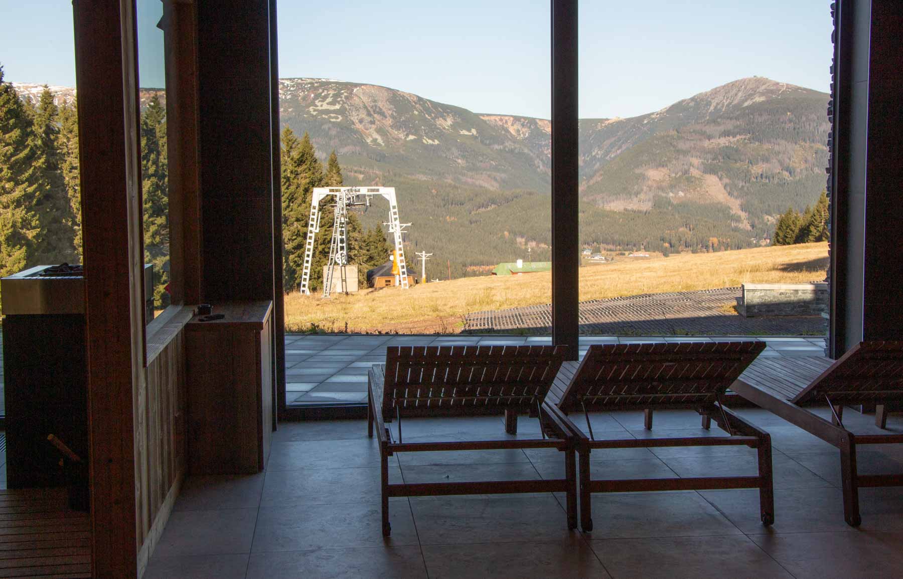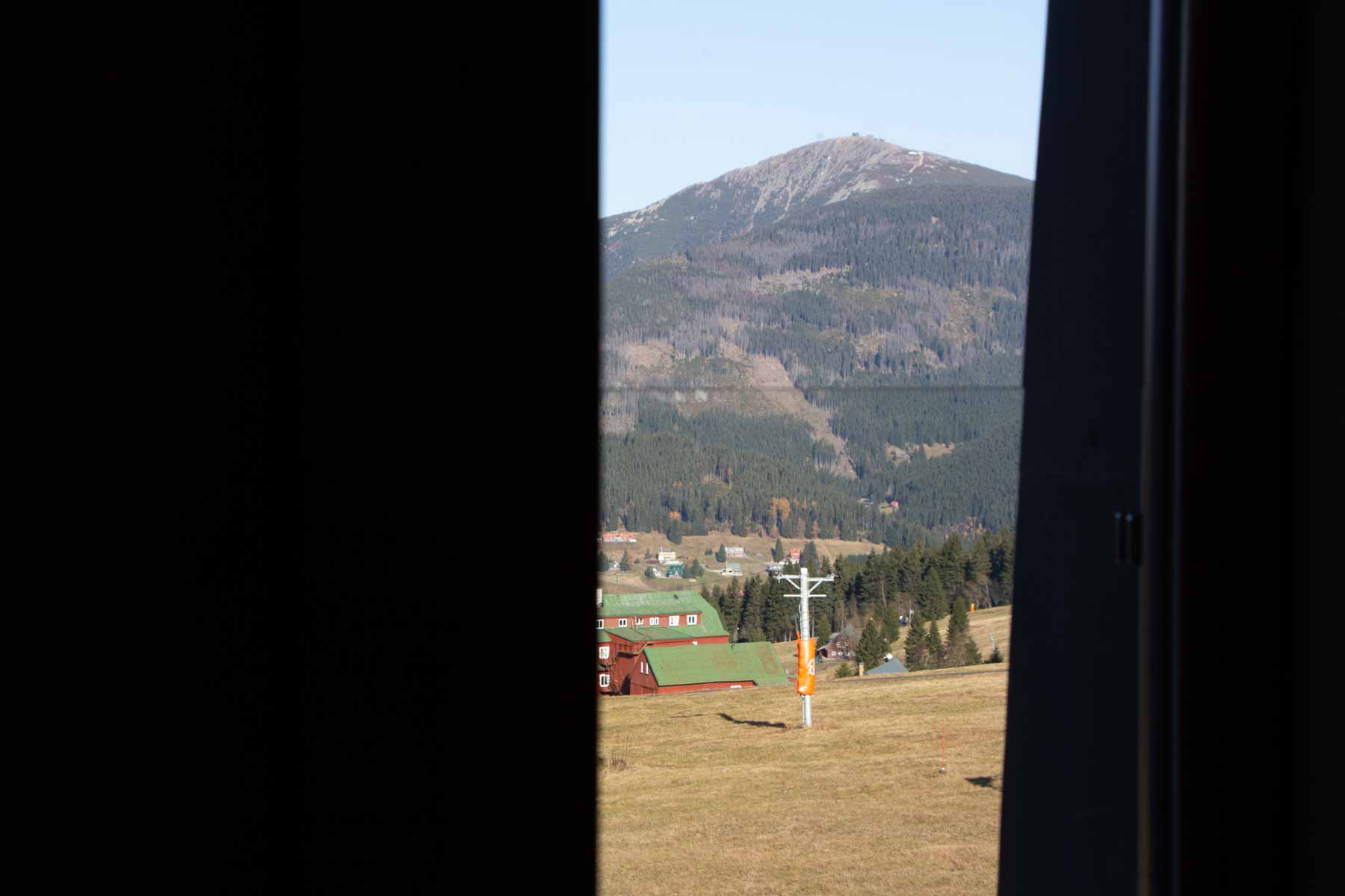 Z obývacího pokoje a jedné ložnice je výhled na Sněžku, z druhé ložnice je výhled přímo do stopy Krkonošské magistrály.