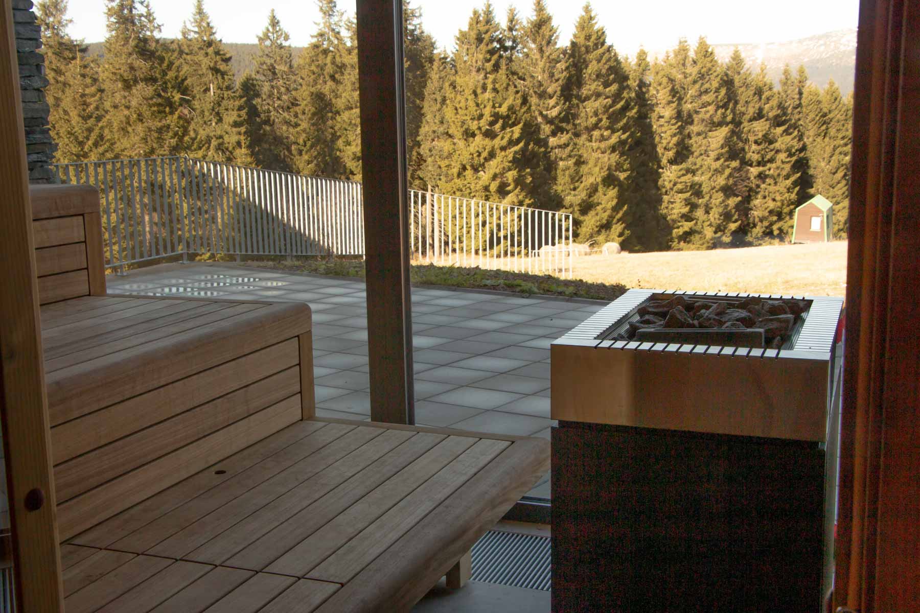 Součástí budovy je wellness se dvěma saunami (včetně panoramatické sauny s výhledem na Sněžku), společenská místnost, dvě lyžárny s přístupem přímo na sjezdovku a kolárna.